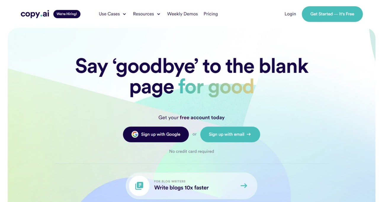 If you’re looking for an easy way to create digital ad copy that sells, improve your email open rates with subject lines that promote your products, services, and brand, or generate blog posts ideas and have the actual content created—all while saving time—look no further than Copy.ai.